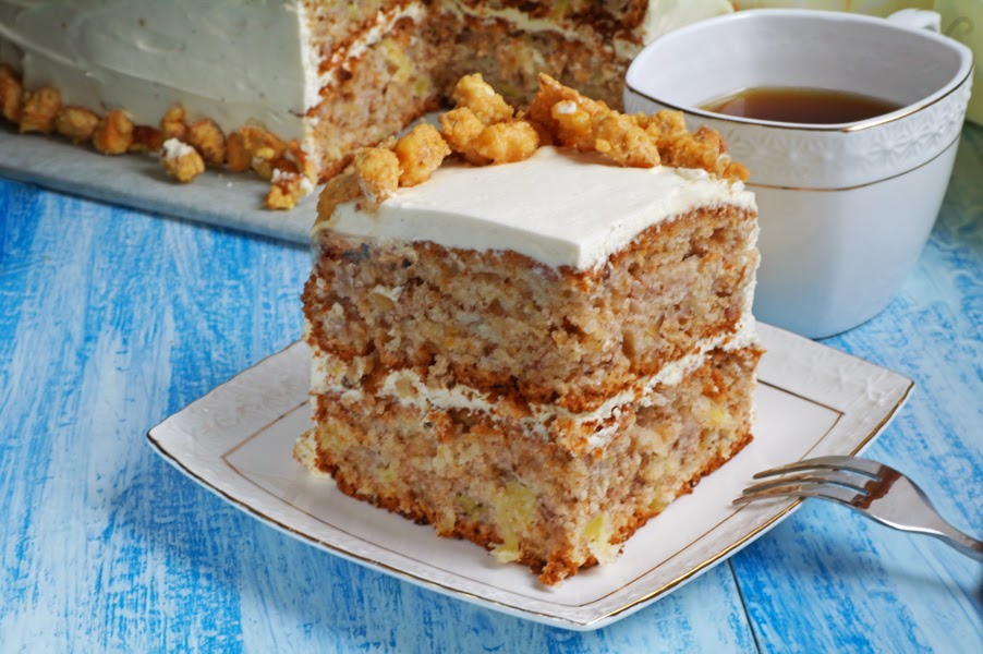 Бананово-ананасовый торт с орехами
